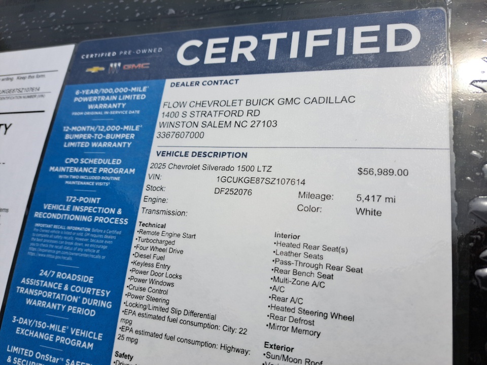 Chevrolet Certified Pre-Owned vehicles undergo a rigorous 172-point inspection, ensuring that this Silverado meets the highest standards of quality and reliability. With a Transferable Warranty, Roadside Assistance, and a Warranty Deductible of $0, you can purchase this vehicle with the utmost confidence.
