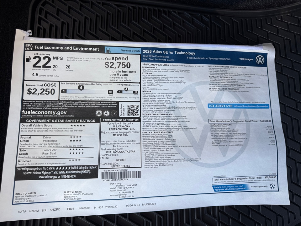 2026 Volkswagen Atlas | 2.0T SE w/Technology 4MOTION | 5 miles