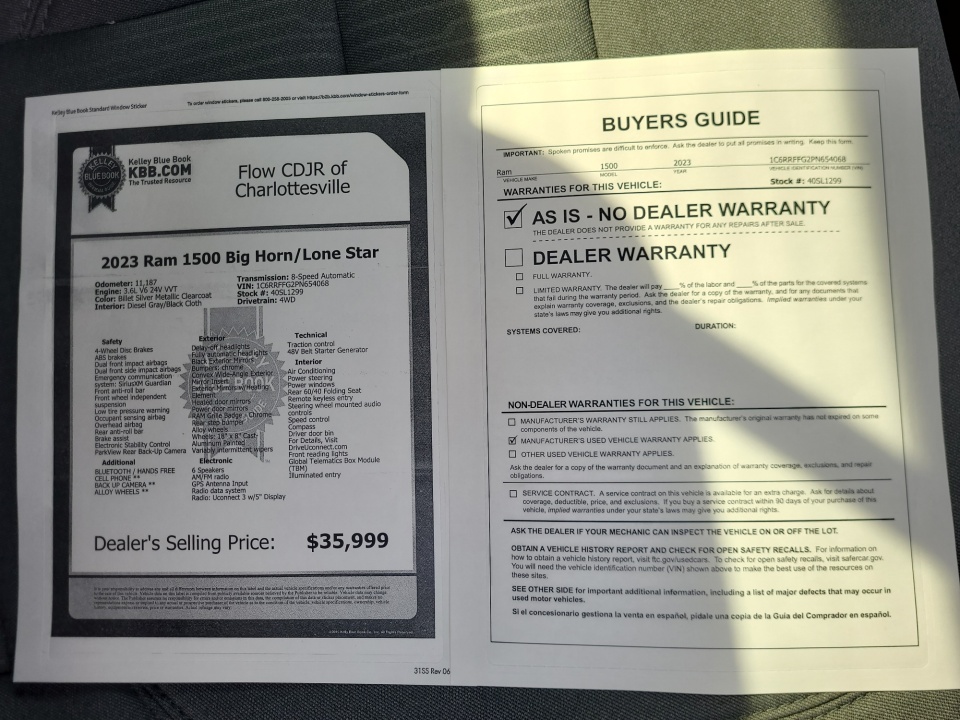 FLOW CERTIFIED! 4YR/100,000 MILE WARRANTY, 3 day money back guarantee, and a free maintenance package on this 2023 Ram 1500 Billet Silver Metallic Clearcoat Big Horn/Lone Star! **