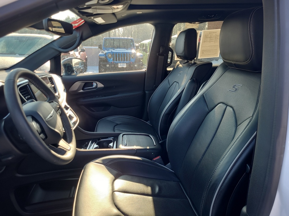 115V Auxiliary Power Outlet, 19 harman/kardon Speakers w/Subwoofer, 3-Channel Video Remote Control, 360 Surround View Camera System, 3rd Row Remote Headrest Dumping, 3rd row seats: split-bench, 760 Watt Amplifier, Amazon Fire TV Built-In, Anodized Ink Badging, Black Day Light Opening Moldings, Black Stow 'N Place Roof Rack, Blu-Ray/DVD Player/USB Port, FamCAM Interior Camera, Gloss Black Exterior Mirrors, Hands Free Sliding Doors, Heated front seats, Heated rear seats, High Definition Multimedia Interface, Integrated Active Noise Cancellation, Nappa Leather Bucket Seats w/S Logo, Parallel & Perpendicular Park Assist w/Stop, ParkSense Front/Rear Park Assist w/Stop, Piano Black Interior Accents, Power Folding 3rd Row Seat, Power Liftgate, Power moonroof, Premium Fascia Upper/Lower Grille w/Black Surround, Premium Rear Fascia Black, Quick Order Package 27P, S Appearance Package, S Badge, Safety Sphere, Seatback Video Screens, Stow N Vac Integrated Vacuum, Uconnect Theater Family Group, Ventilated front seats, Video USB Port, Wheels: 20" x 7.5" S-Model Aluminum Design 1.