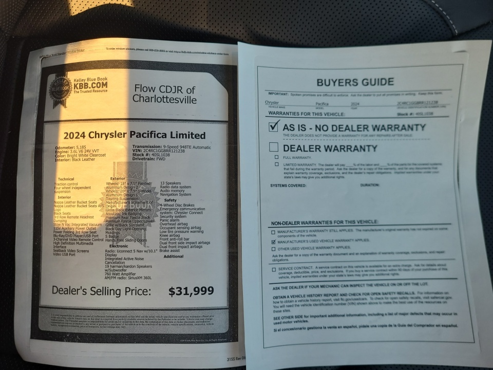 Flow CDJR of Charlottesville is proud to offer this stunning 2024 Chrysler Pacifica Bright White Clearcoat Limited.