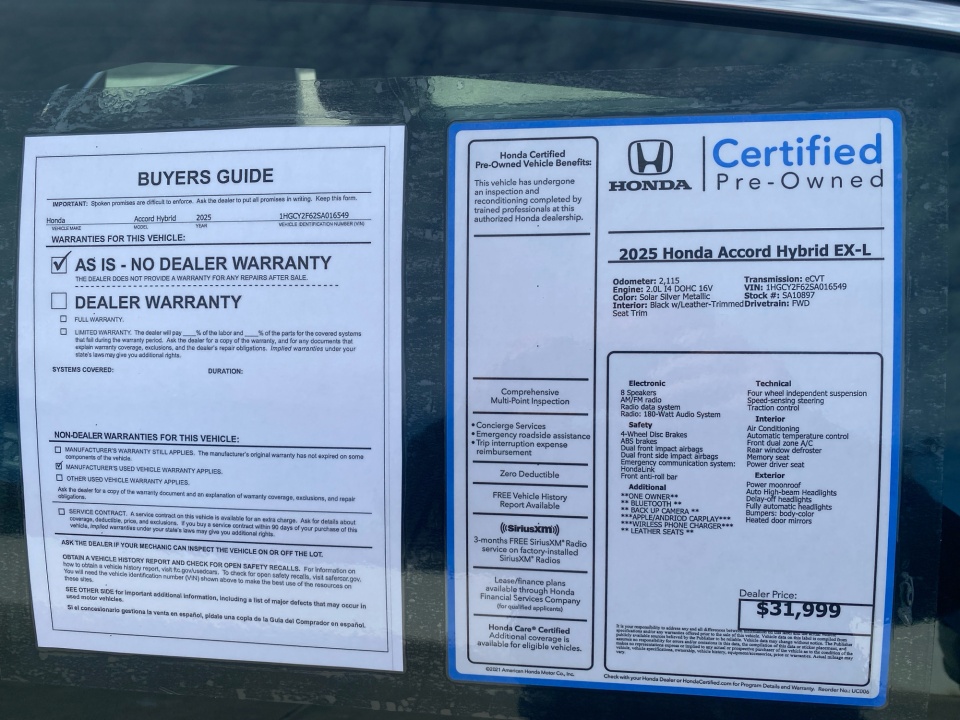 Flow Honda is pleased to offer this wonderful-looking 2025 Honda Accord Hybrid Solar Silver Metallic EX-L with the following features: