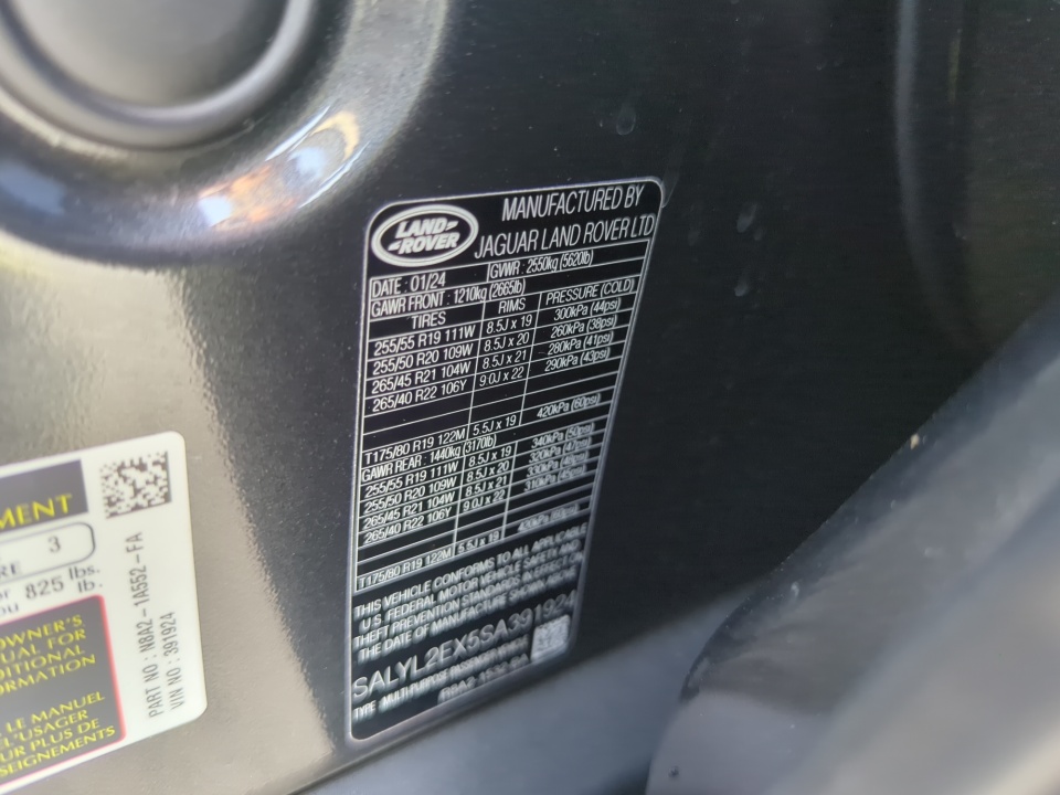 3D Surround Camera, AM/FM radio: SiriusXM, Apple CarPlay & Android Auto, Automatic temperature control, Cold Climate Pack, Exterior Parking Camera Rear, Front dual zone A/C, Front fog lights, Fully automatic headlights, Head-Up Display, Headlight Power Wash, Heated & Cooled Front Seats, Heated Rear Seats, Heated Steering Wheel, Heated Windscreen, Navigation system: Pivi Pro, Park Assist, Power Liftgate, Power moonroof, Radio: Meridian Sound System, Rain sensing wipers, Remote keyless entry, Security system, Sirius XM Satellite Radio & HD Radio, Speed control, Steering wheel mounted audio controls, Technology Package, Wade Sensing, Wheels: 20" 10 Spoke Gloss Black.