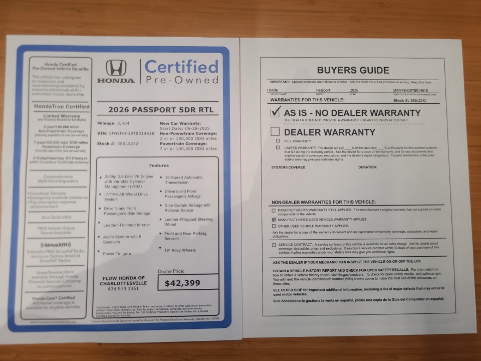 FLOW CERTIFIED! 4YR/100,000 MILE WARRANTY, 3 day money back guarantee, and a free maintenance package on this 2026 Honda Passport Radiant Red RTL! **