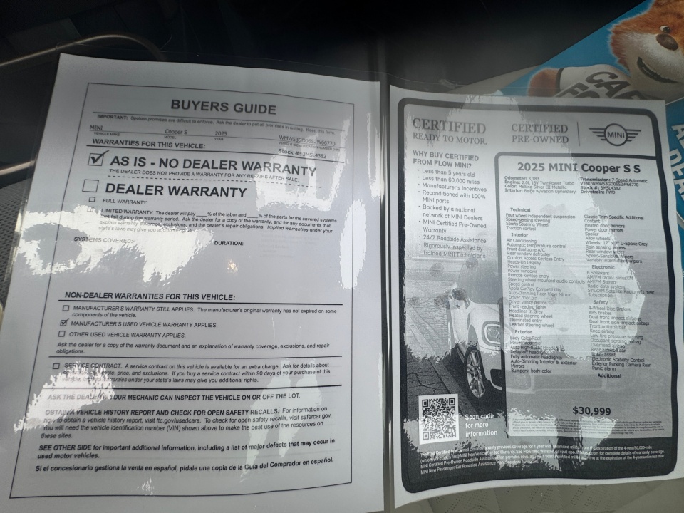 Certified. MINI Certified Pre-Owned Details:
