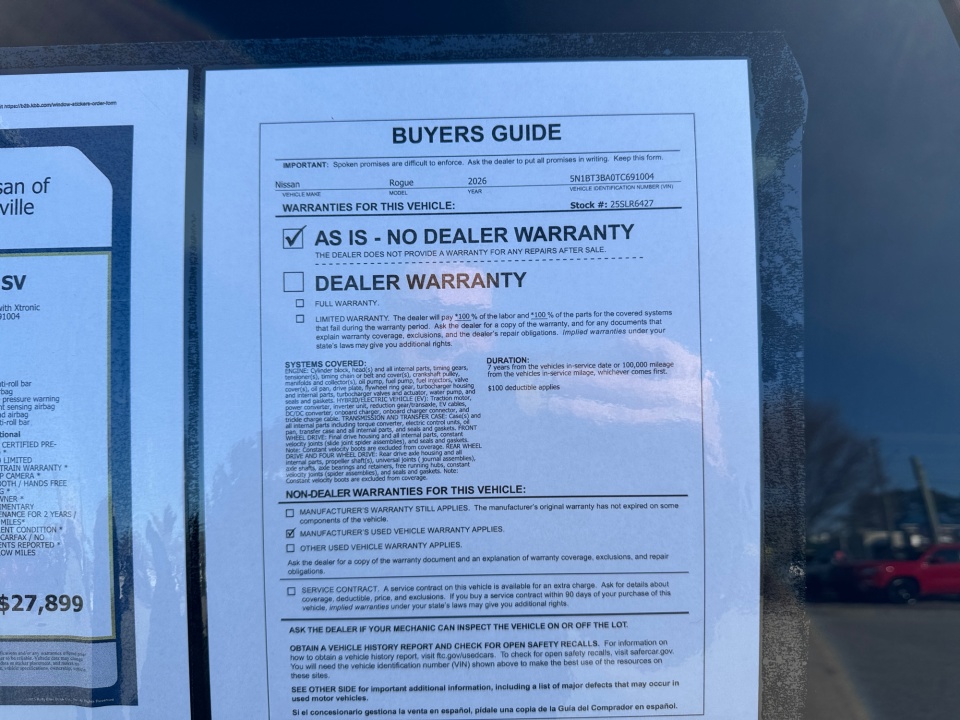 * 7 Year/100,000 Mile Limited Warranty, 24/7 Hour Roadside Assistance, Carfax Vehicle History Report, Plus 1 Year Pre-Paid Maintenance Included. Gas Powered Nissan Models Only.