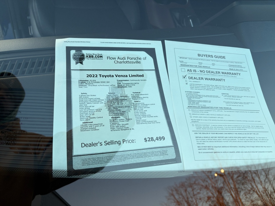 2022 Venza Toyota | Limited AWD (Natl) | 62,667 miles