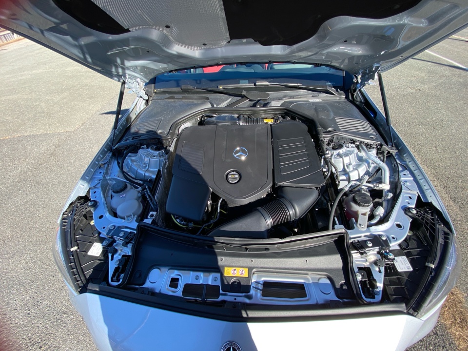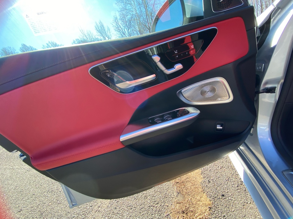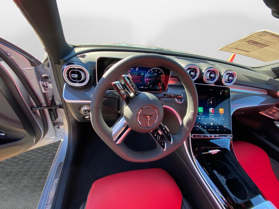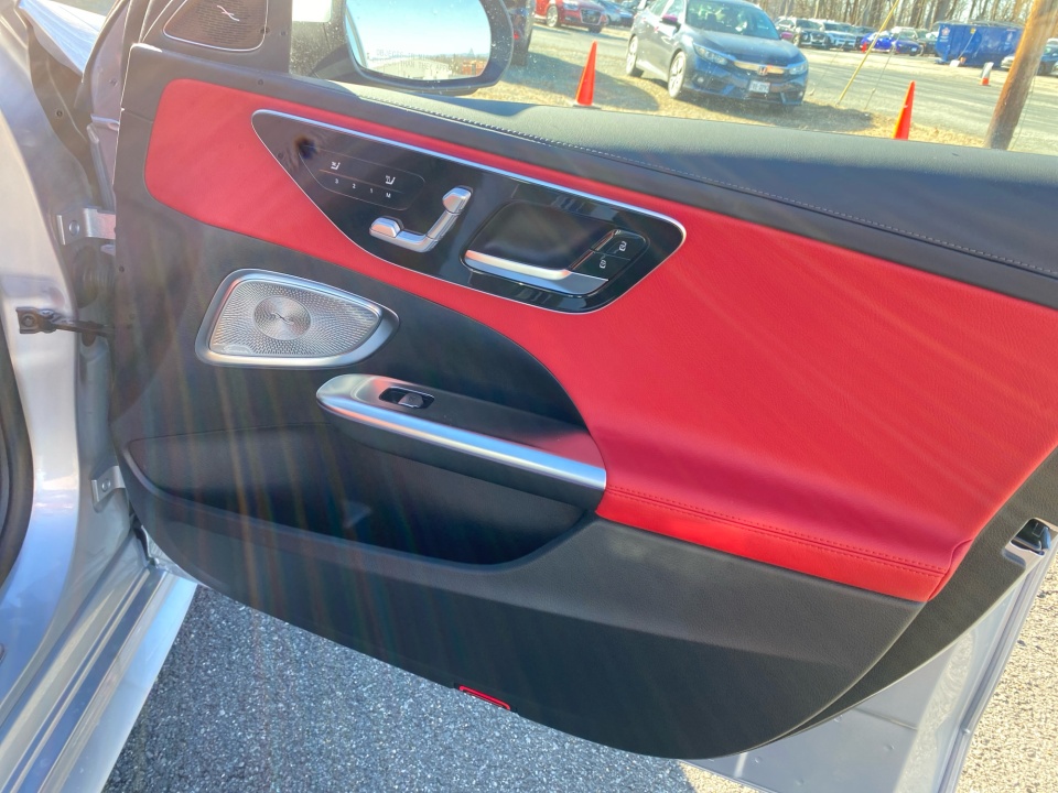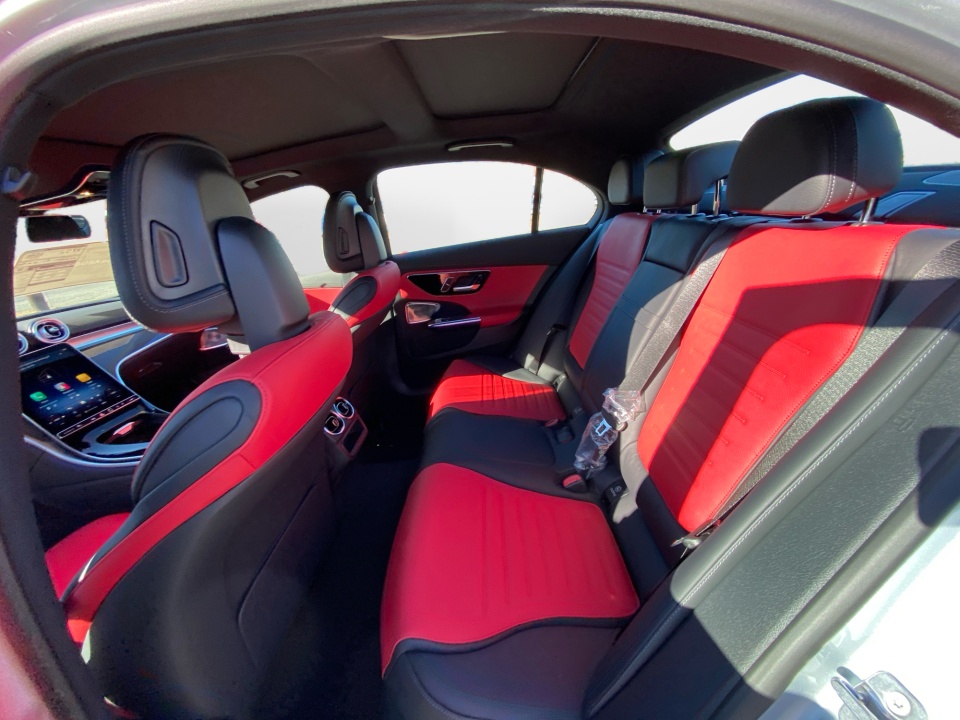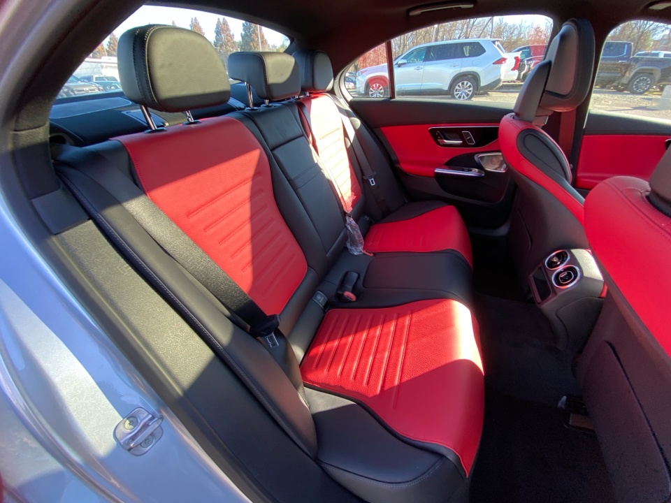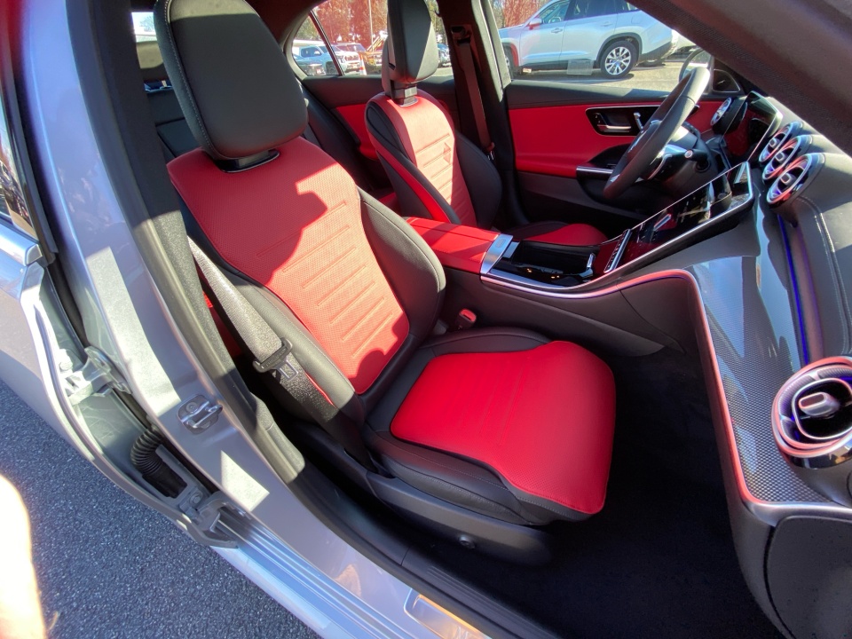 Finished in Cirrus Silver Metallic over AMG Power Red and Black leather, this C 300 delivers a bold, athletic presence. The AMG Line Package adds aggressive character with AMG body styling, a diamond grille, sport brake system, and 19-inch AMG wheels with black accents. Subtle details like the AMG spoiler lip, illuminated door sills, and panoramic sunroof elevate its sleek, performance inspired profile.