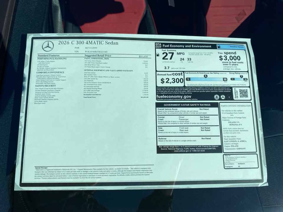 2026 Mercedes-Benz C 300 | C 300 4MATIC Sedan | 5 miles