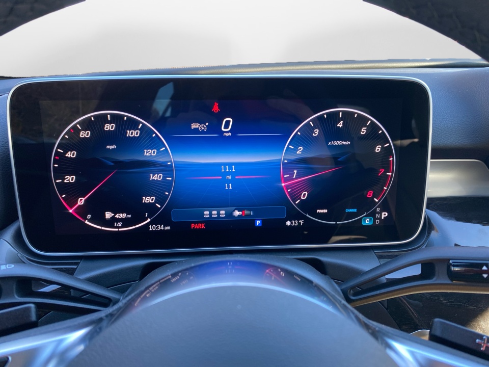 Technology is seamlessly integrated through the MBUX system with Navigation Premium, live traffic, and a crisp 12.3-inch digital instrument cluster paired with a 12.3-inch center display. Apple CarPlay, Android Auto, and wireless charging keep you connected, while the Burmester surround sound system delivers rich, detailed audio. The surround view camera and PARKTRONIC with Active Parking Assist make tight spaces stress free.