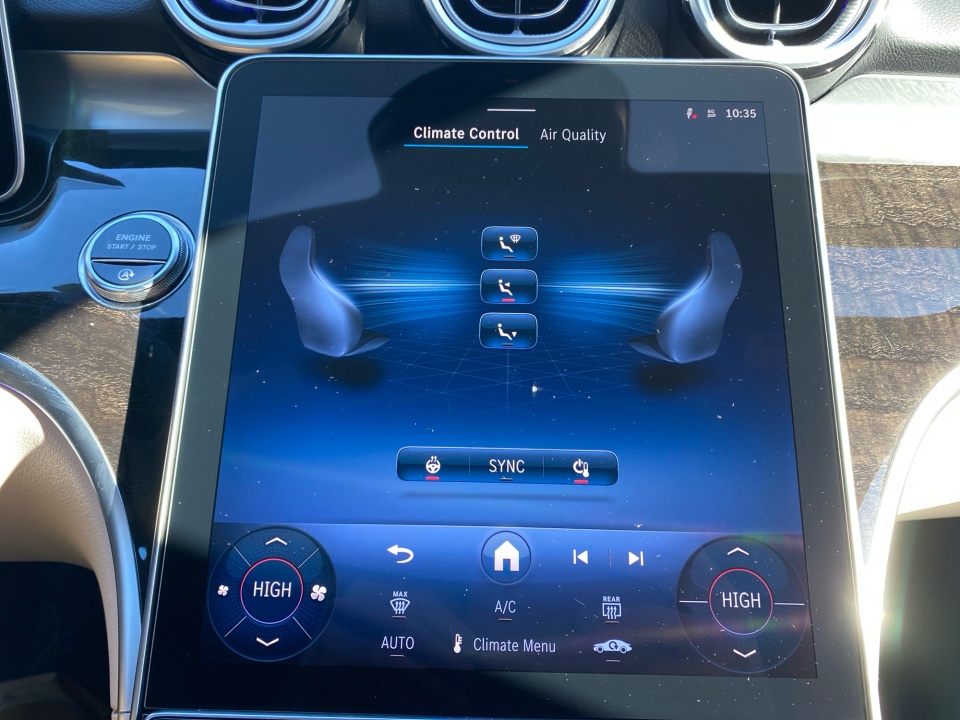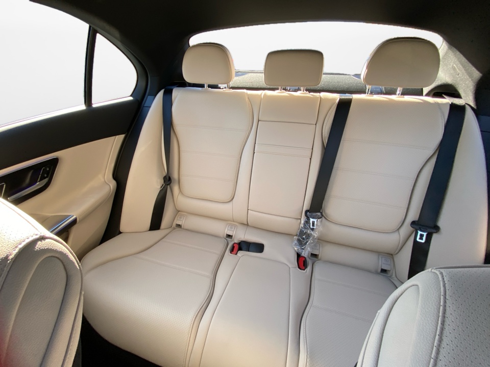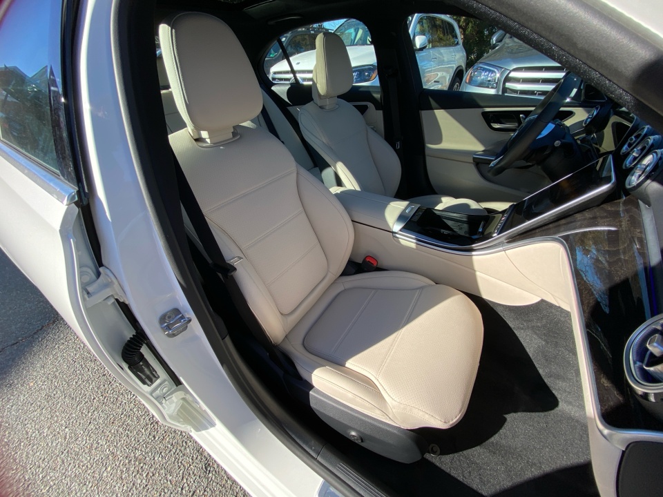 Finished in Polar White with a Macchiato Beige interior, this C 300 presents a bright, elegant look that feels both modern and inviting. The Exclusive Line enhances its presence with refined exterior details, illuminated door sills, and 19-inch five spoke wheels that balance sophistication with a subtle sport edge. A panoramic sunroof brings natural light into the cabin and adds to the open, upscale feel.