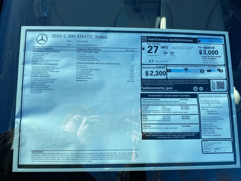 The 2026 Mercedes-Benz C 300 4MATIC delivers refined luxury, advanced technology, and confident all wheel drive performance in a clean, timeless design.