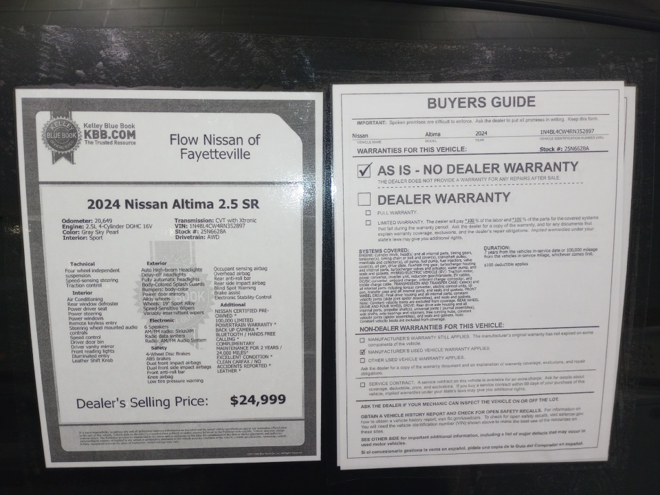 * 7 Year/100,000 Mile Limited Warranty, 24/7 Hour Roadside Assistance, Carfax Vehicle History Report, Plus 1 Year Pre-Paid Maintenance Included. Gas Powered Nissan Models Only.