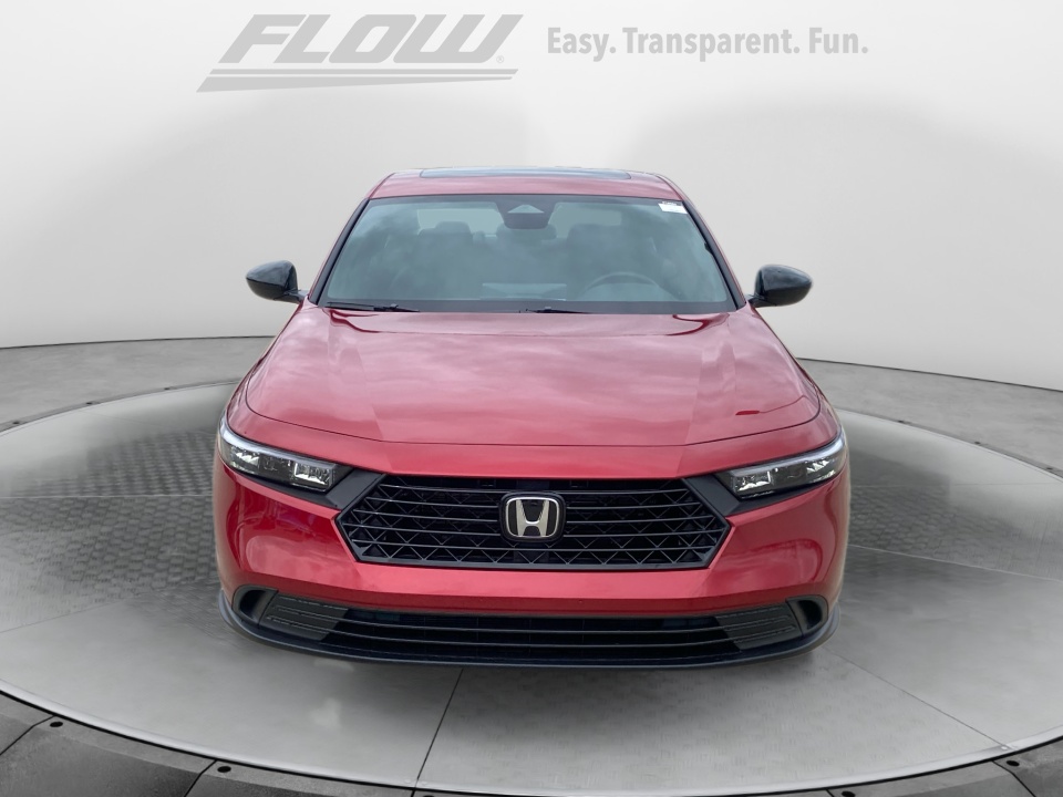 Flow Honda is honored to offer this good-looking 2025 Honda Accord Hybrid Radiant Red Metallic Sport with the following features:
