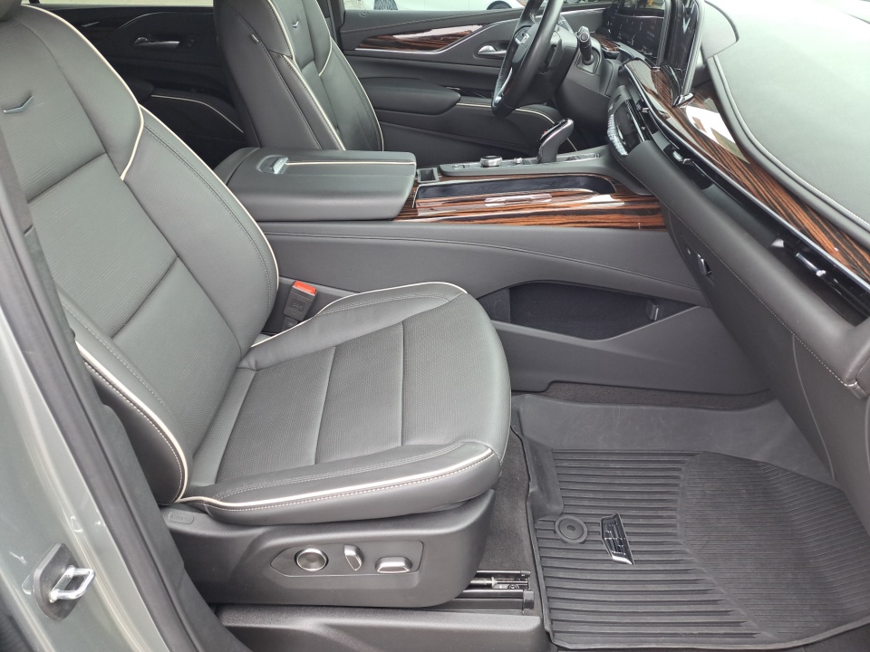 Step inside, and the cabin transforms into a sanctuary of luxury, featuring premium leather seating, heated and ventilated front seats, heated second-row seating, tri-zone climate control, power-adjustable seats with memory, and an intuitive Cadillac infotainment system with Apple CarPlay, Android Auto, navigation, and available rear-seat entertainment.