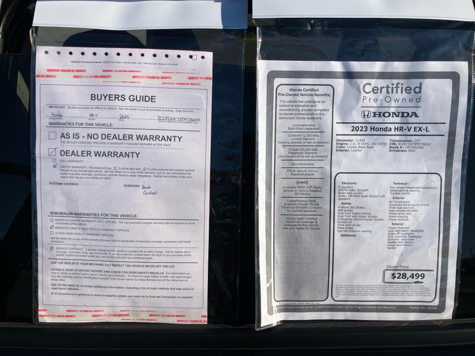 2023 Honda HR-V | EX-L AWD CVT | 29,265 miles