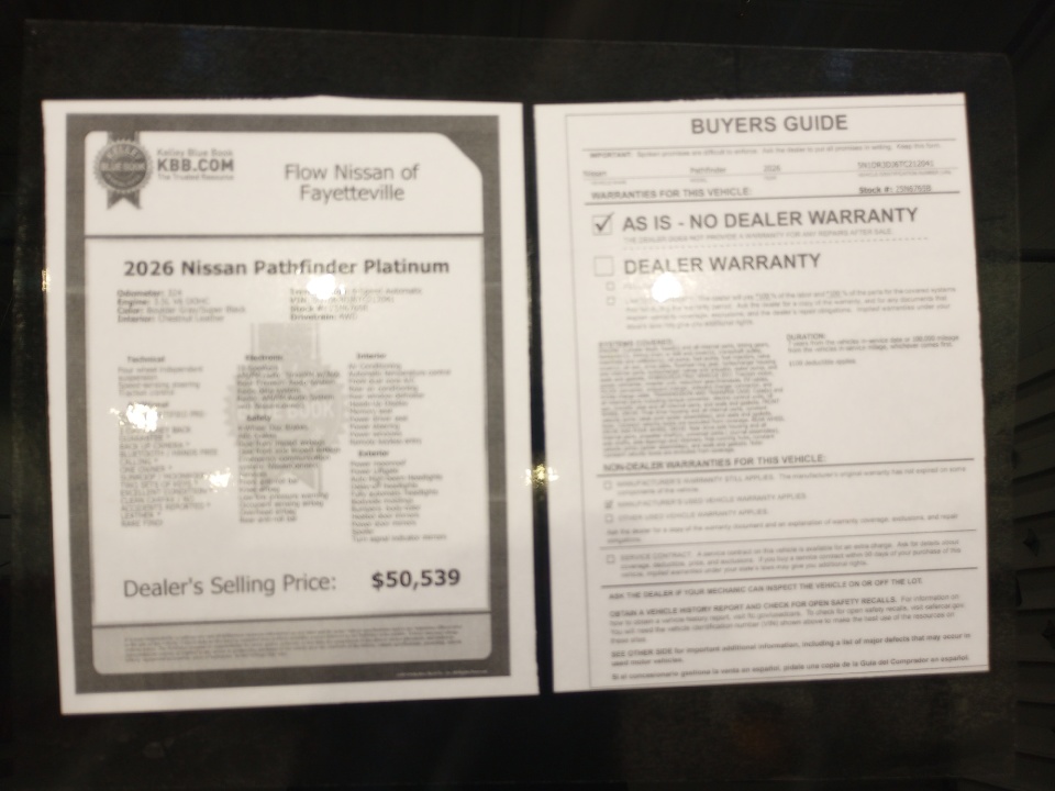 All of our Pre-Owned vehicles go through a QRP(Quality Renewal Process). Our customers tell us that we have the most professional, trustworthy & courteous staff they've ever experienced at a car dealership. Please come check out Flow Nissan of Fayetteville's Easy, Transparent, Fun, No Haggle, No Pressure shopping experience. Don't hesitate to contact us at www.flownissanfayetteville.com or simply by calling 910-323-4400 to set up your VIP test drive. Thank you for allowing us to serve your automotive needs over the past 50+ years.