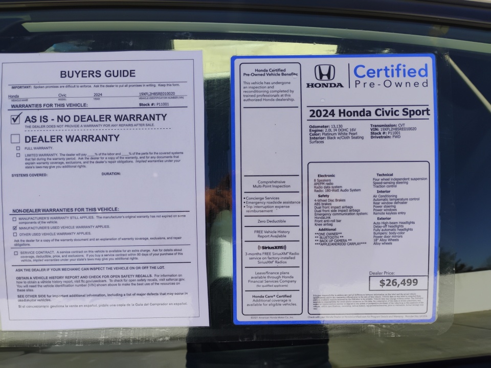 Flow Honda is excited to offer this superb-looking 2024 Honda Civic Platinum White Pearl Sport with the following features: