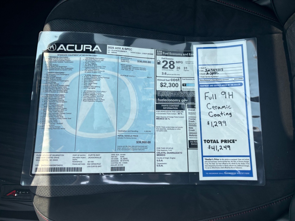 Flow Acura of Wilmington is proud to offer this charming 2025 Acura ADX Platinum White A-Spec Package with the following features: