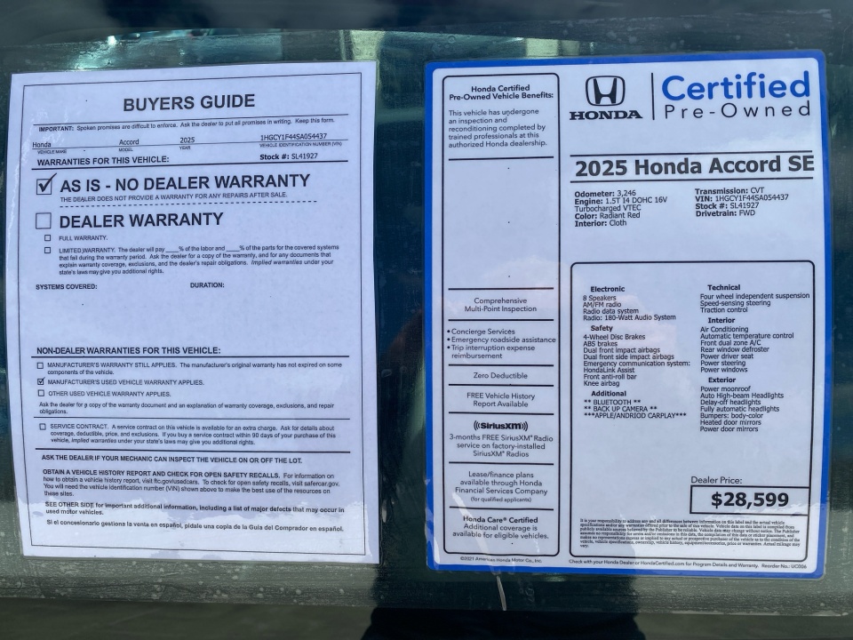 Flow Honda is delighted to offer this good-looking 2025 Honda Accord Radiant Red Metallic SE with the following features: