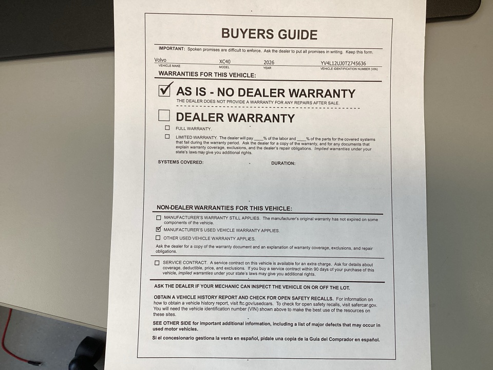 One owner, local trade with only 1,621 miles on the odometer, this 2026 Volvo XC40 B5 Core is a rare find.