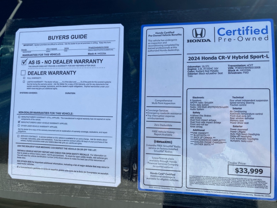 Flow Honda is pumped up to offer this good-looking 2024 Honda CR-V Hybrid Radiant Red Metallic Sport-L with the following features: