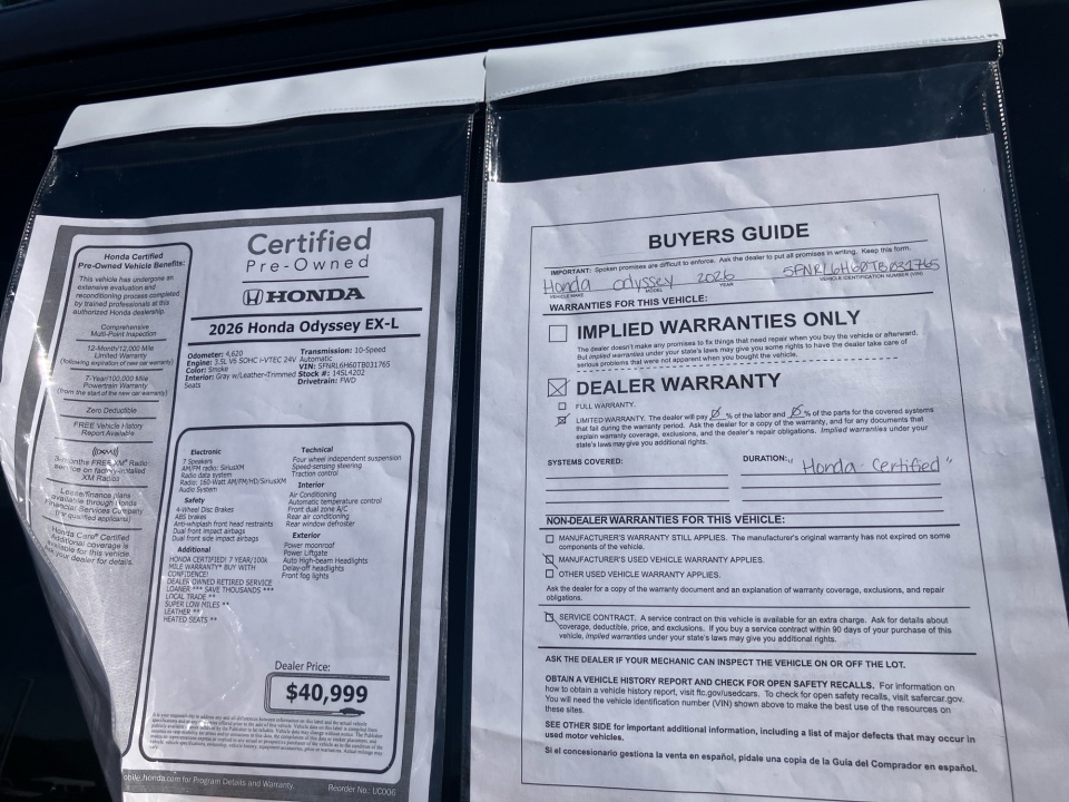 Certified. HondaTrue Certified Details: