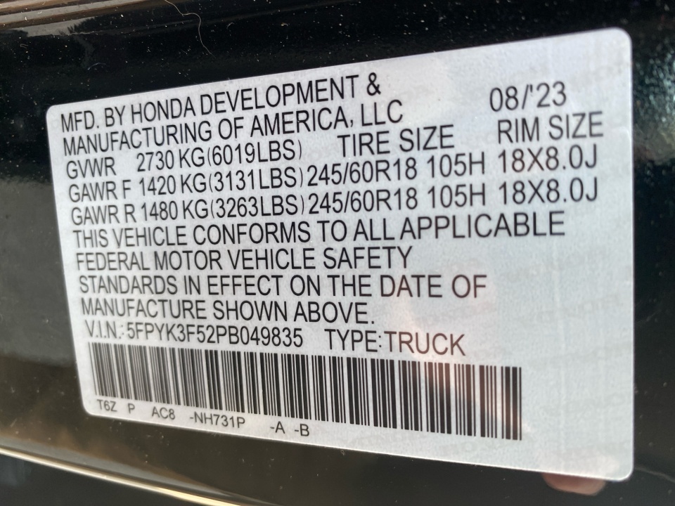 5FPYK3F52PB049835 2023 Honda Ridgeline RTL