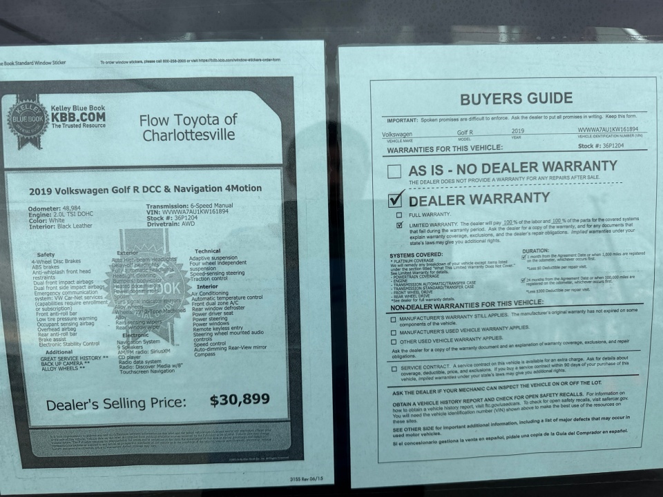 2019 Golf R Volkswagen | 2.0T Manual w/DCC/Nav | 48,993 miles