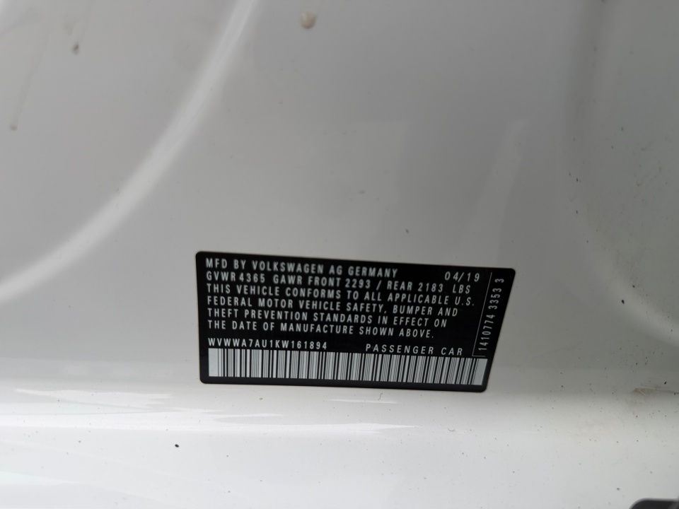 VIN WVWWA7AU1KW161894