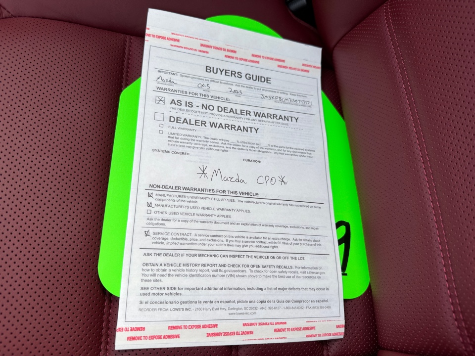 Mazda Certified Pre-Owned Details: