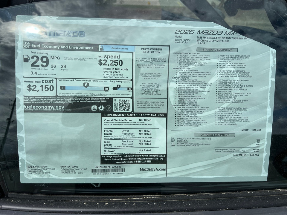 JM1NDAM74T0700826 2026 Mazda MX-5 Miata RF Grand Touring