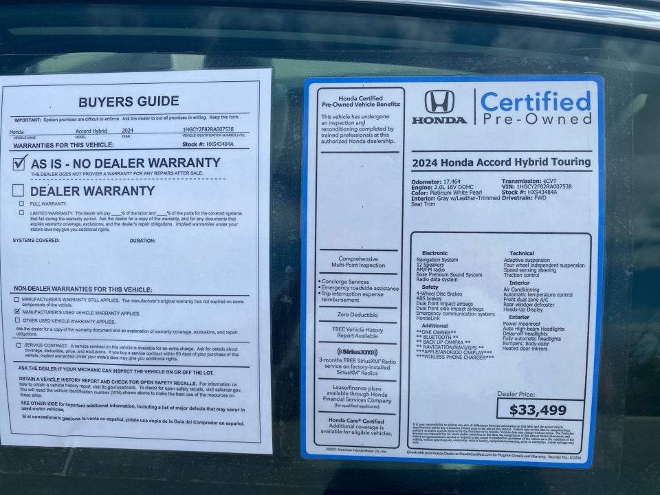 Flow Honda is pleased to offer this good-looking 2024 Honda Accord Hybrid Platinum White Pearl Touring with the following features: