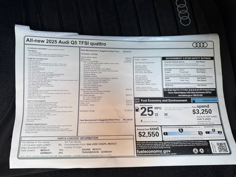 AUDI CERTIFIED, CLEAN CARFAX, RETIRED SERVICE LOANER