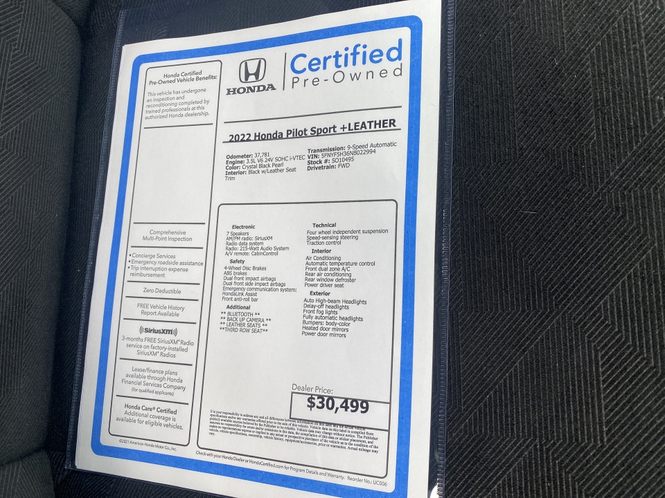 Flow Honda is excited to offer this beautiful 2022 Honda Pilot Crystal Black Pearl Sport with the following features: