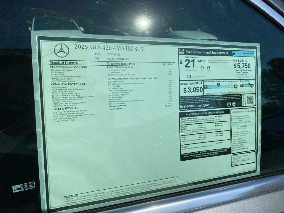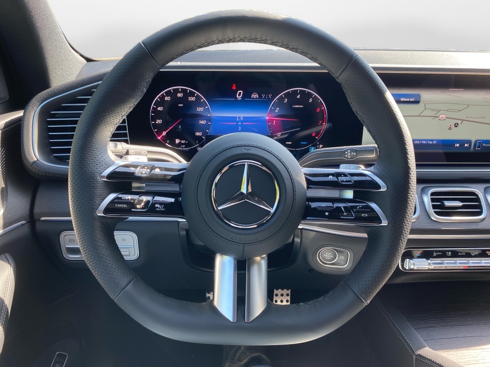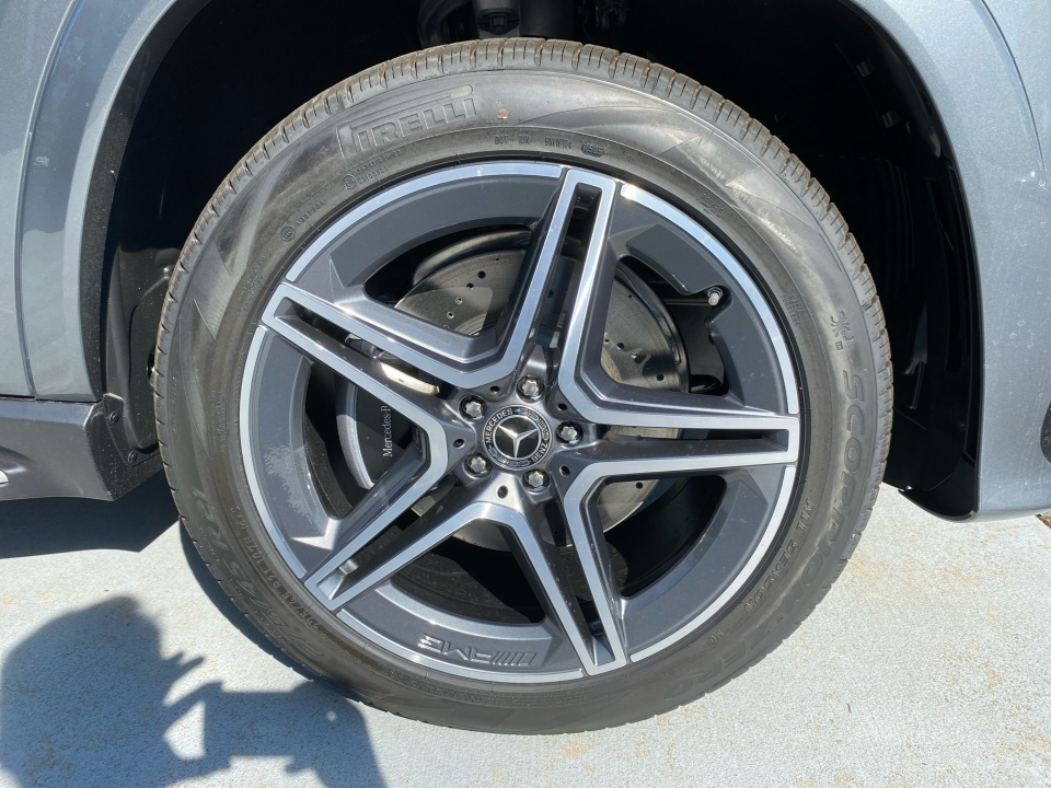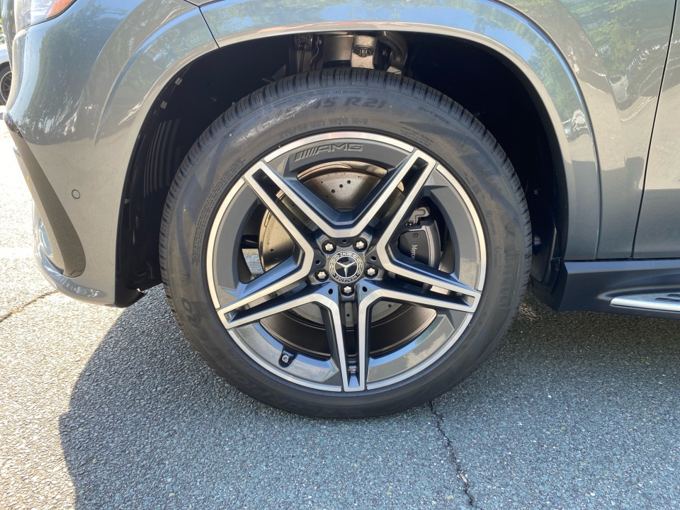 Finished in Selenite Grey Metallic over Black interior with Natural Grain Grey Oak trim, this GLS pairs elegance with sport-inspired design. The AMG Line Exterior Package adds AMG body styling, 21" AMG twin 5-spoke wheels, sport brakes, AMG floor mats, and a multifunction Nappa leather steering wheel, giving this SUV a confident and athletic stance. Illuminated brushed aluminum running boards and a panorama sunroof complete the exterior.