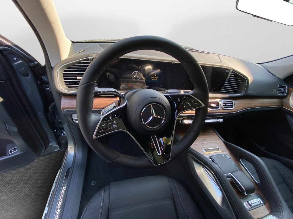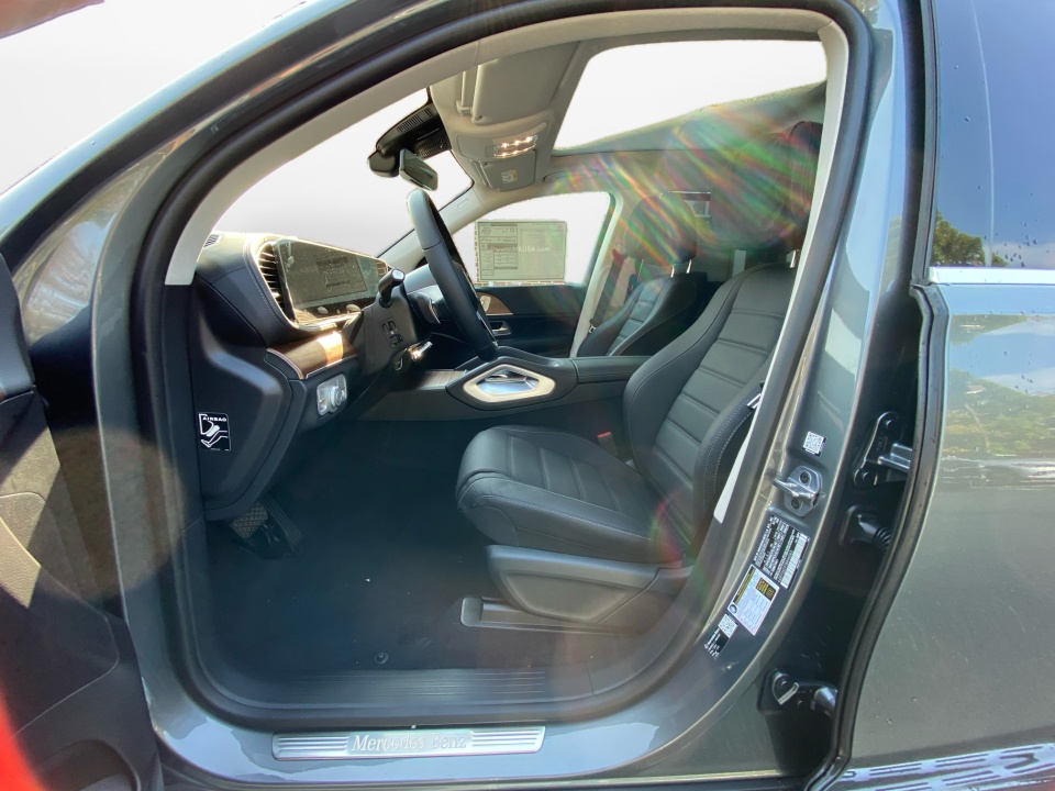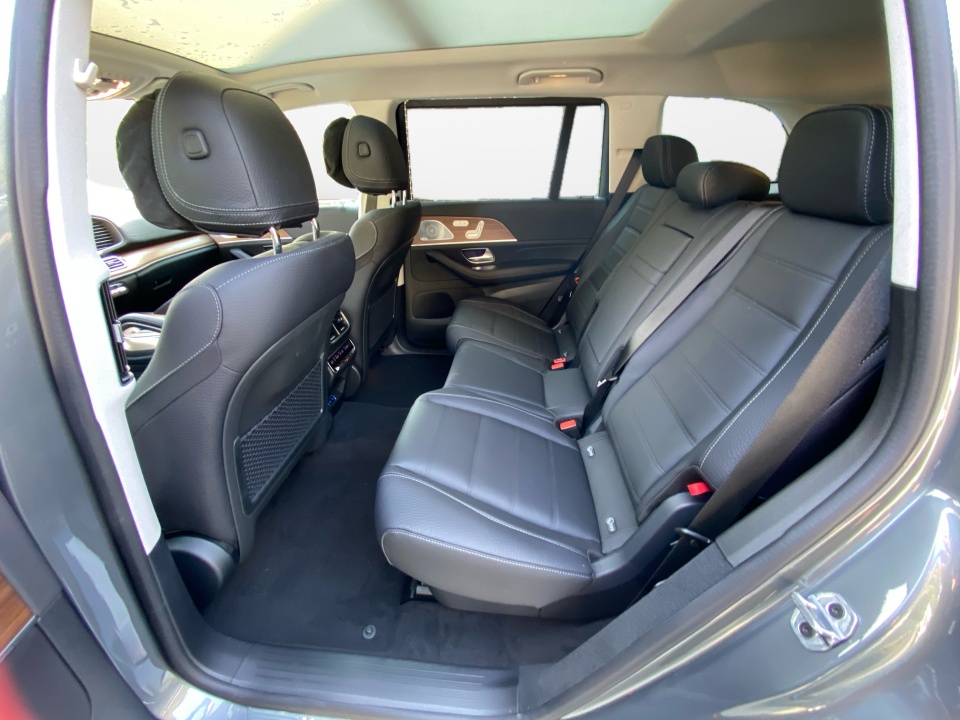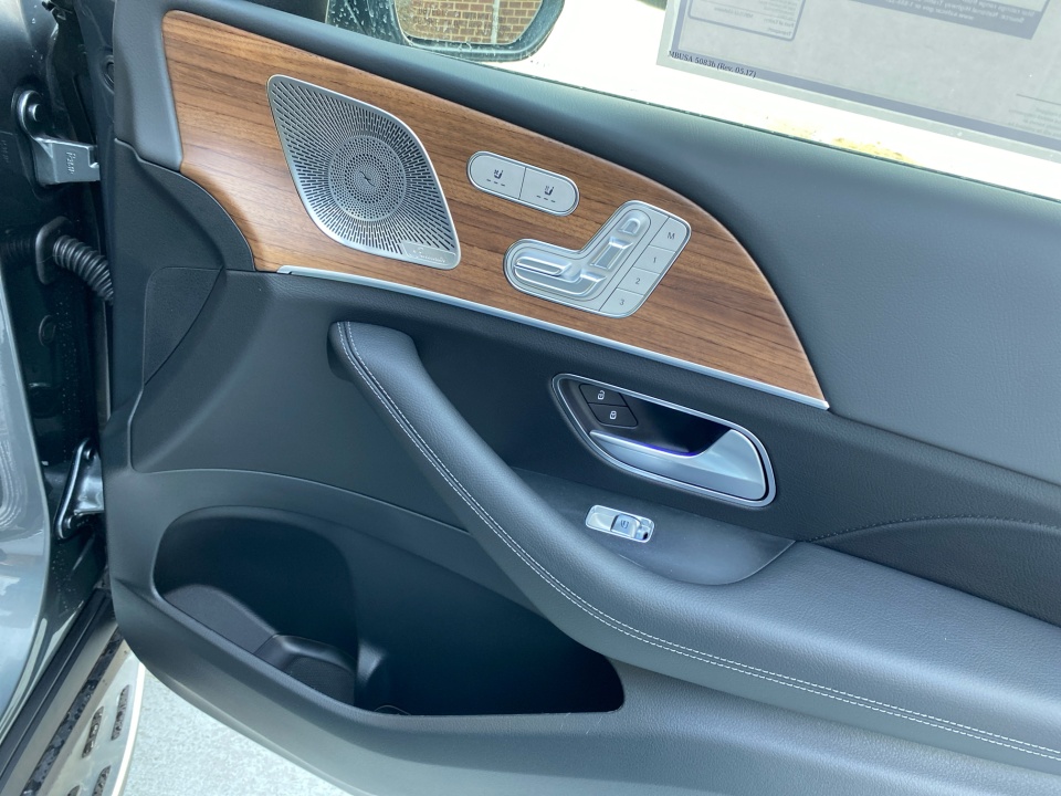 Dressed in Selenite Grey Metallic over Black leather with Natural Grain Brown Walnut trim, this GLS balances elegance with practicality. The 21" triple 5-spoke wheels and illuminated brushed aluminum running boards highlight its confident design. A power panorama roof and soft-close doors enhance convenience and style.