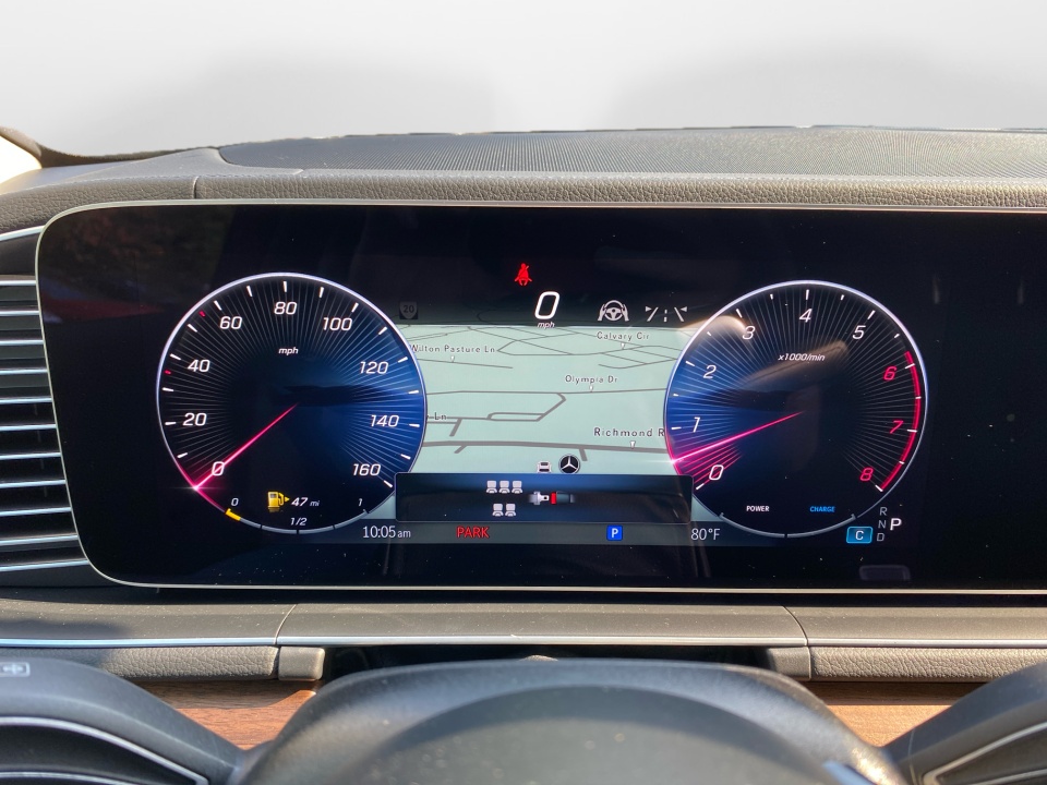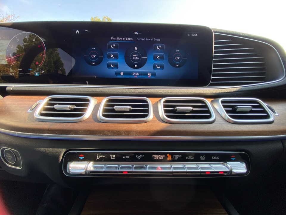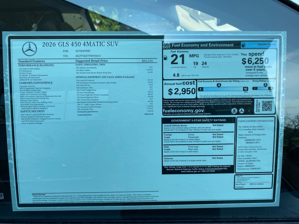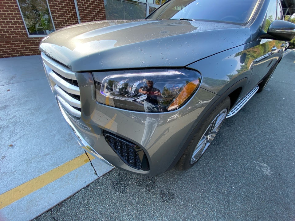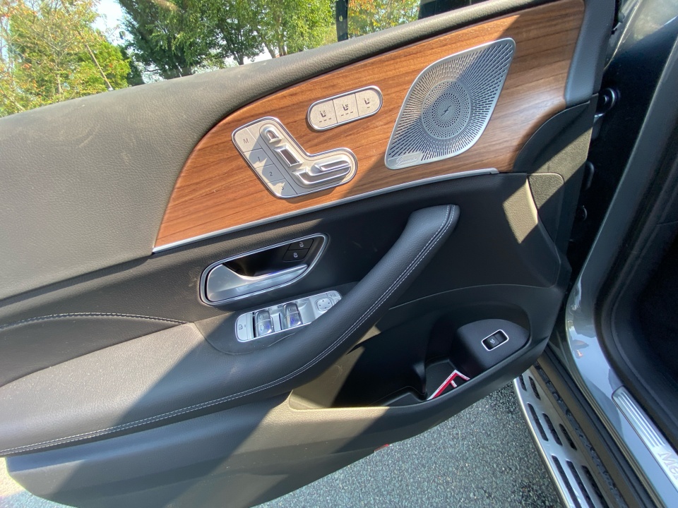 Dressed in Selenite Grey Metallic over Black leather with Natural Grain Brown Walnut trim, this GLS balances elegance with practicality. The 21" triple 5-spoke wheels and illuminated brushed aluminum running boards highlight its confident design. A power panorama roof and soft-close doors enhance convenience and style.