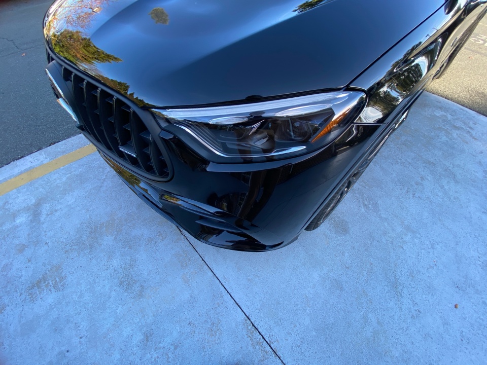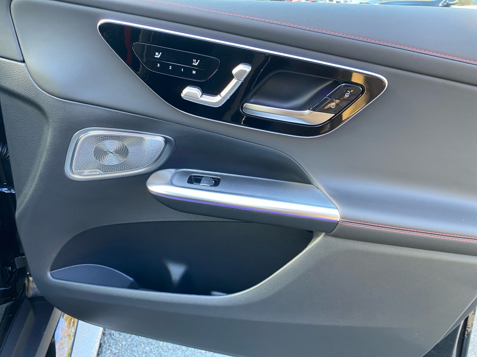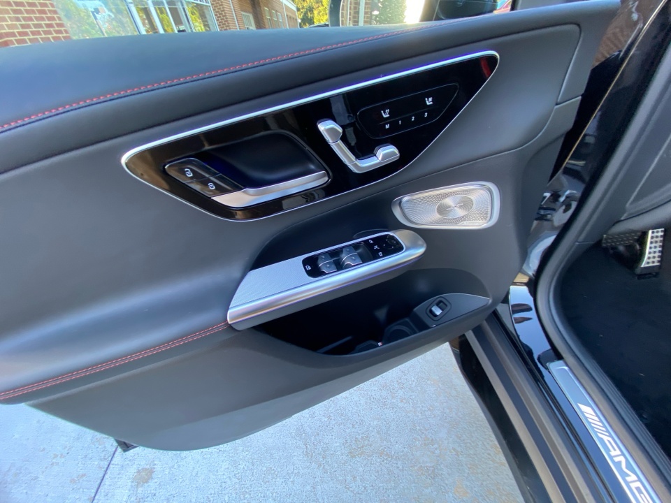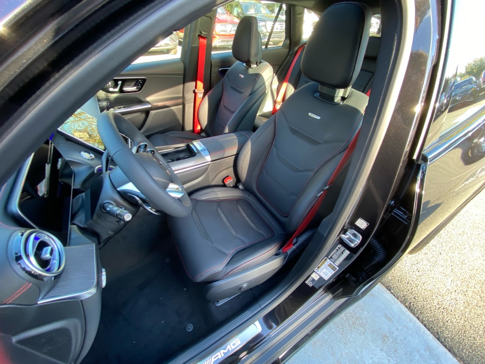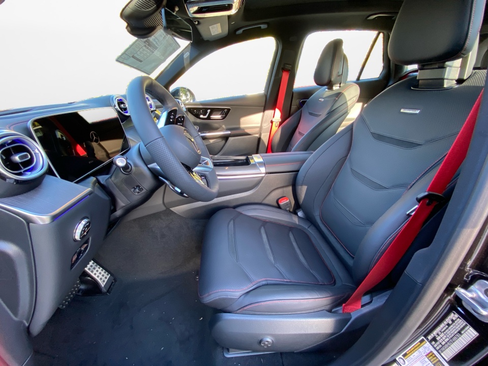 Finished in Obsidian Black Metallic with Black Leather accented by striking red stitching, this AMG GLC commands attention from every angle. The AMG Night Package Plus and 21" AMG Y-Spoke Matte Black Wheels create an assertive, athletic stance, while darkened exterior elements, red brake calipers, and the AMG-specific grille amplify its performance pedigree. DIGITAL LIGHT headlamps with projection functions, a Panorama Sunroof, and illuminated logo projectors complete its distinctive presence.