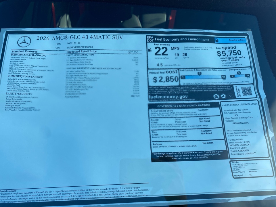 2026 AMG GLC 43 Mercedes-Benz | AMG GLC 43 4MATIC SUV | 5 miles