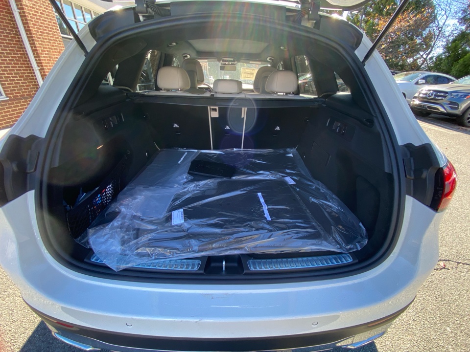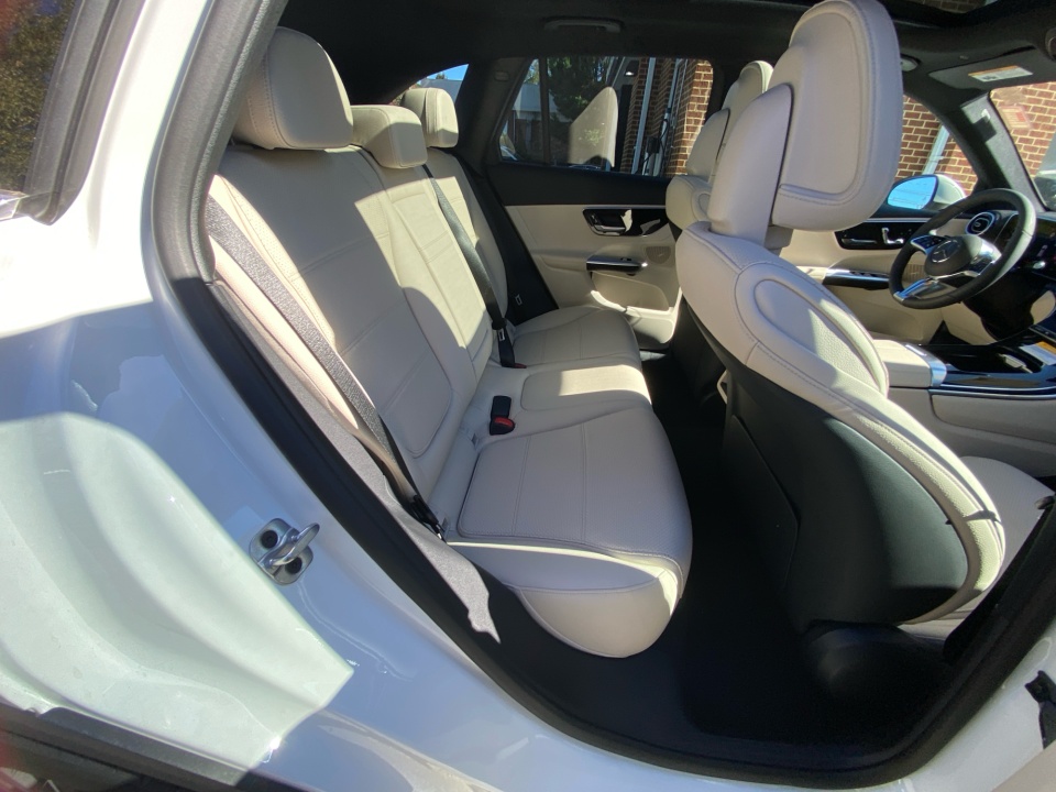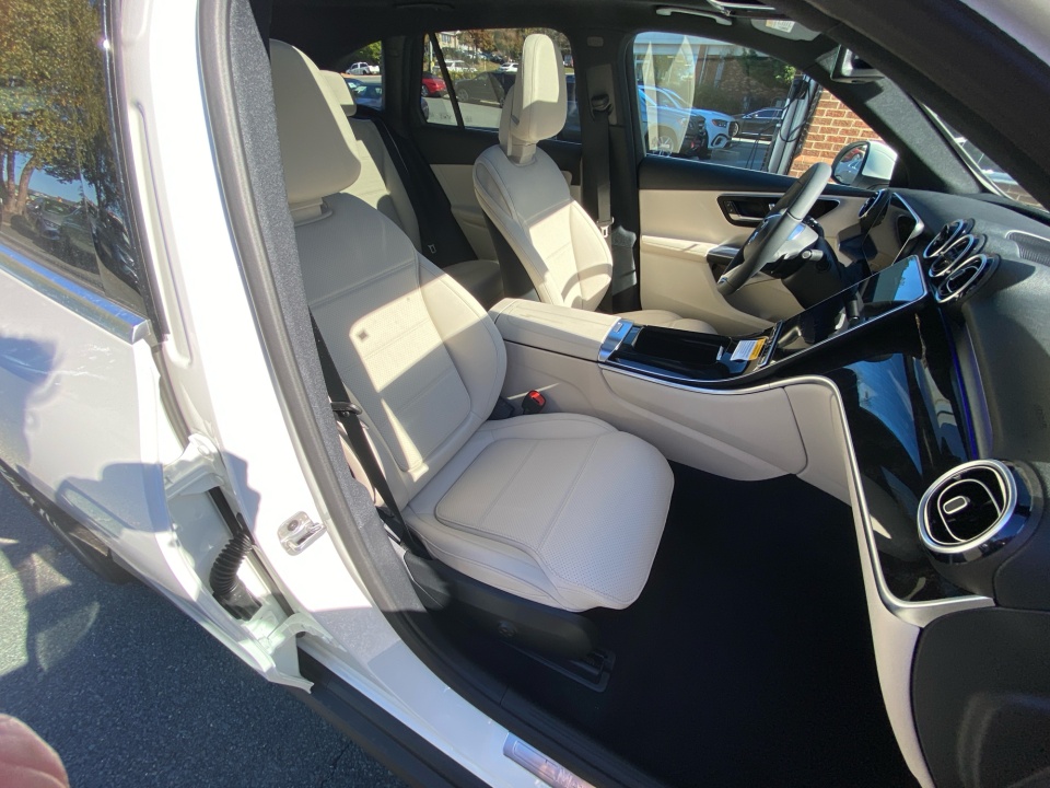 Finished in Polar White over Macchiato Beige interior, the GLC 300 radiates modern refinement with timeless Mercedes-Benz craftsmanship. Its 19" Multispoke Wheels, chrome exterior trim, and aluminum roof rails give it a commanding yet graceful presence, while the panorama sunroof opens the cabin to natural light and air. The Piano Black Lacquer Center Console and Glossy Brown Ash Wood trim create a sophisticated contrast inside, complemented by the black headliner and multicolor ambient lighting that define its upscale atmosphere.