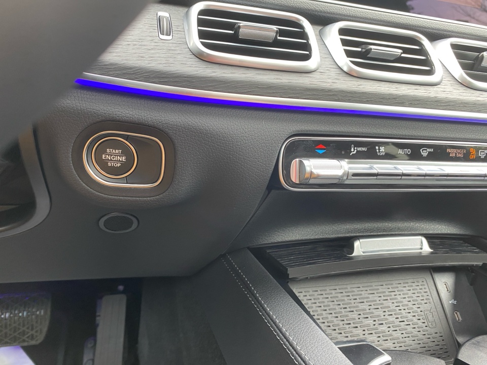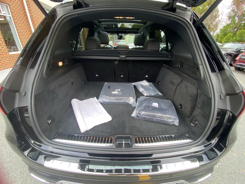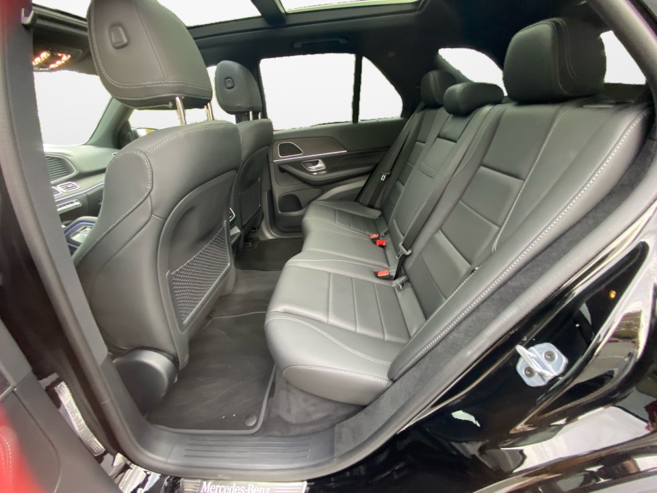 Finished in Black over Black, this GLE Plug-In Hybrid presents a bold, modern aesthetic with 20" Multispoke Wheels, LED headlamps, and a sweeping panorama sunroof adding upscale presence. A heated steering wheel, power liftgate, and illuminated logo projectors elevate convenience and style, while privacy glass enhances its sleek silhouette.