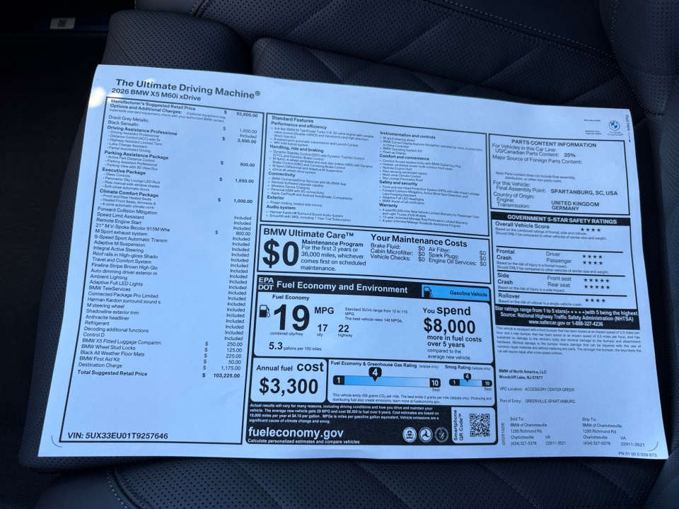 5UX33EU01T9257646 2026 BMW X5 M60i