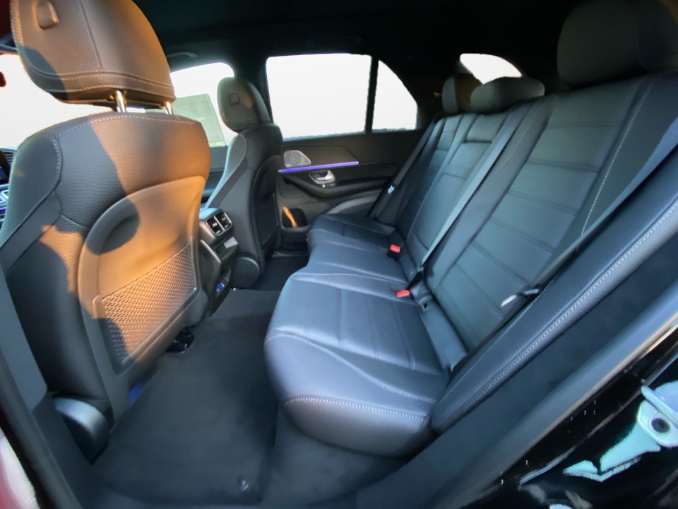 Finished in Obsidian Black Metallic over Black Leather, this GLE 580 commands attention with AMG Line body styling, 21" AMG Multispoke Wheels, and the signature LED headlamps that illuminate with precision and presence. The panoramic sunroof, chrome exterior details, and privacy glass accentuate its refined silhouette, while the trailer hitch with increased towing capacity extends its capability well beyond city limits.