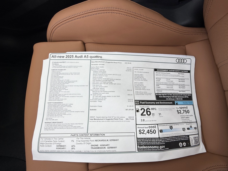 2025 All-new A5 Audi | Premium Plus 2.0 TFSI quattro | 10 miles