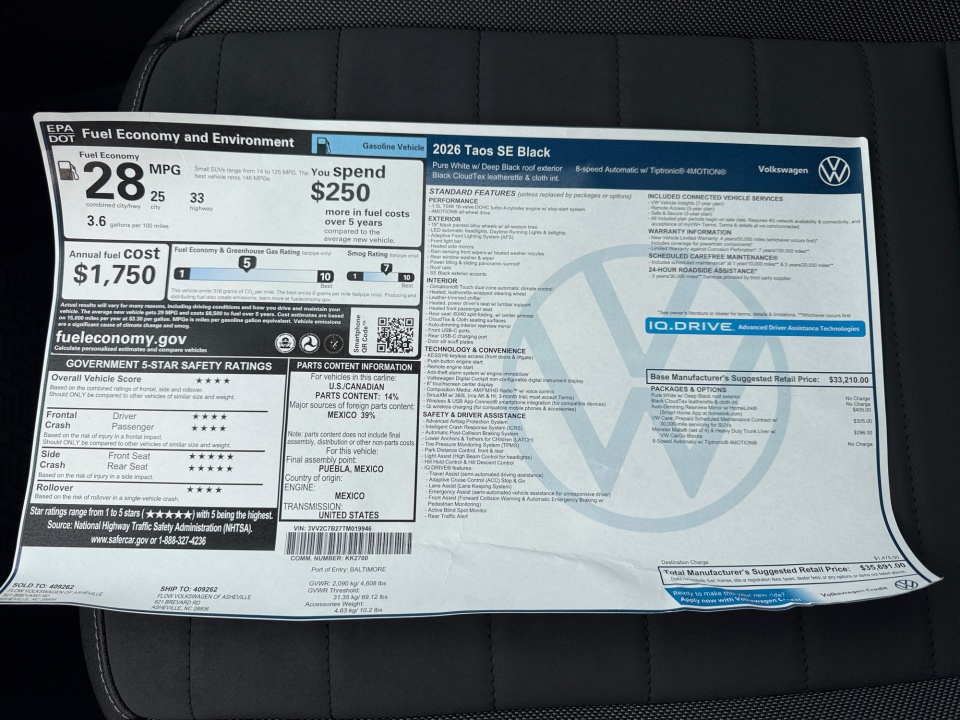 2026 Volkswagen Taos | SE Black 4MOTION | 8 miles