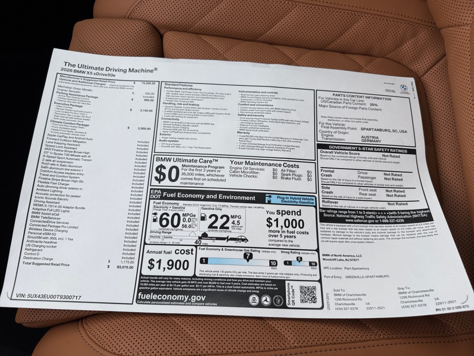 2026 BMW X5 PHEV | xDrive50e Plug-In Hybrid | 6 miles