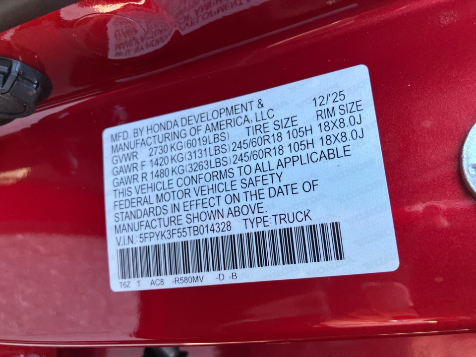 5FPYK3F55TB014328 2026 Honda Ridgeline RTL