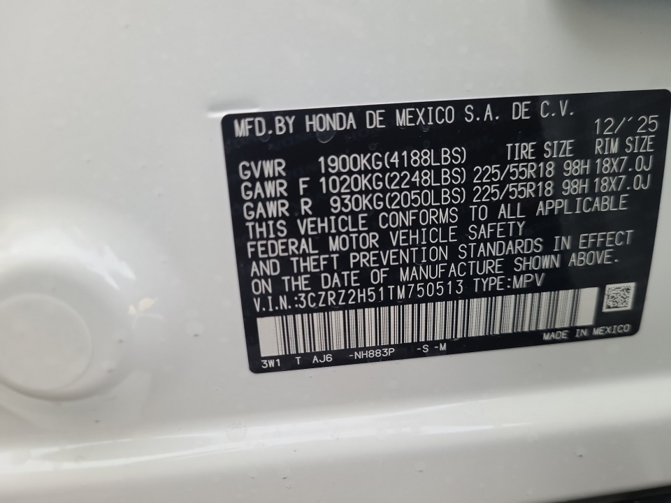 3CZRZ2H51TM750513 2026 Honda HR-V AWD Sport