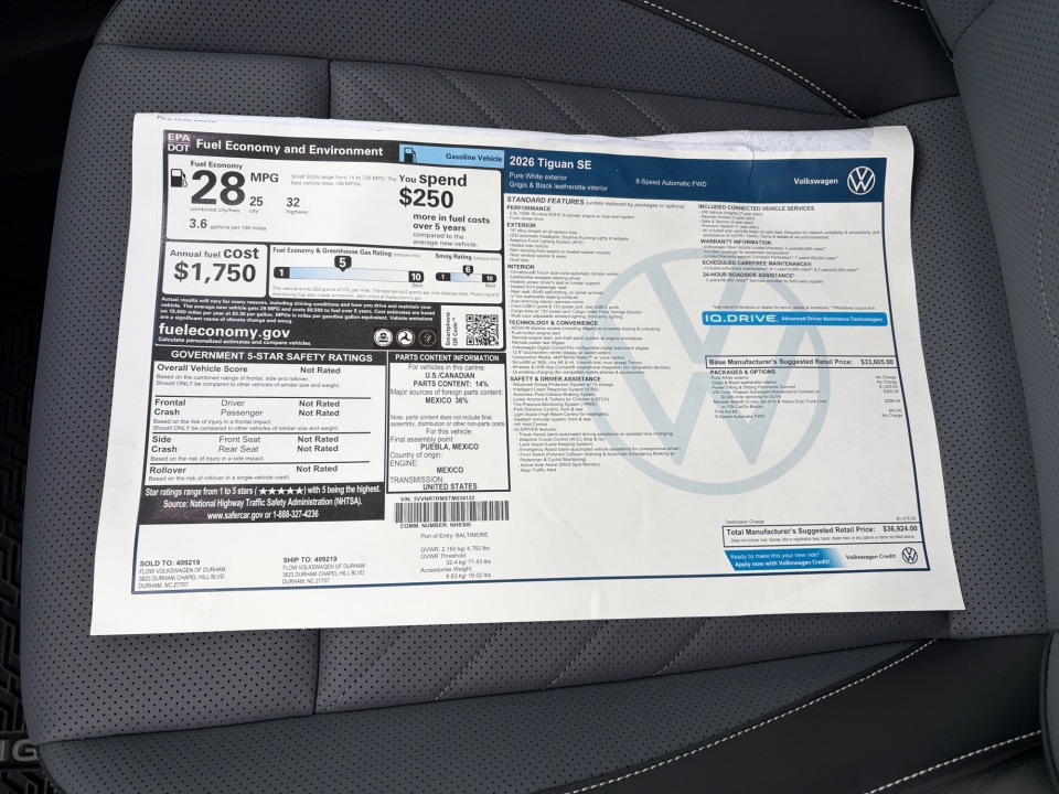 2026 Volkswagen Tiguan | 2.0T SE FWD | 10 miles